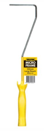 * UNi-PRO 100mm’X 16″ Mini Slide-on Frame - 100mm x 16″. Long reach frame ideal for hard to reach areas. Ergonomic handle contoured for maximum control, low fatigue. Lightweight for greater accuracy in and around small areas. Slide-on frame construction, easy to use and compatible with all 100mm slide-on mini roller covers. The threaded handle fits most standard extension poles.