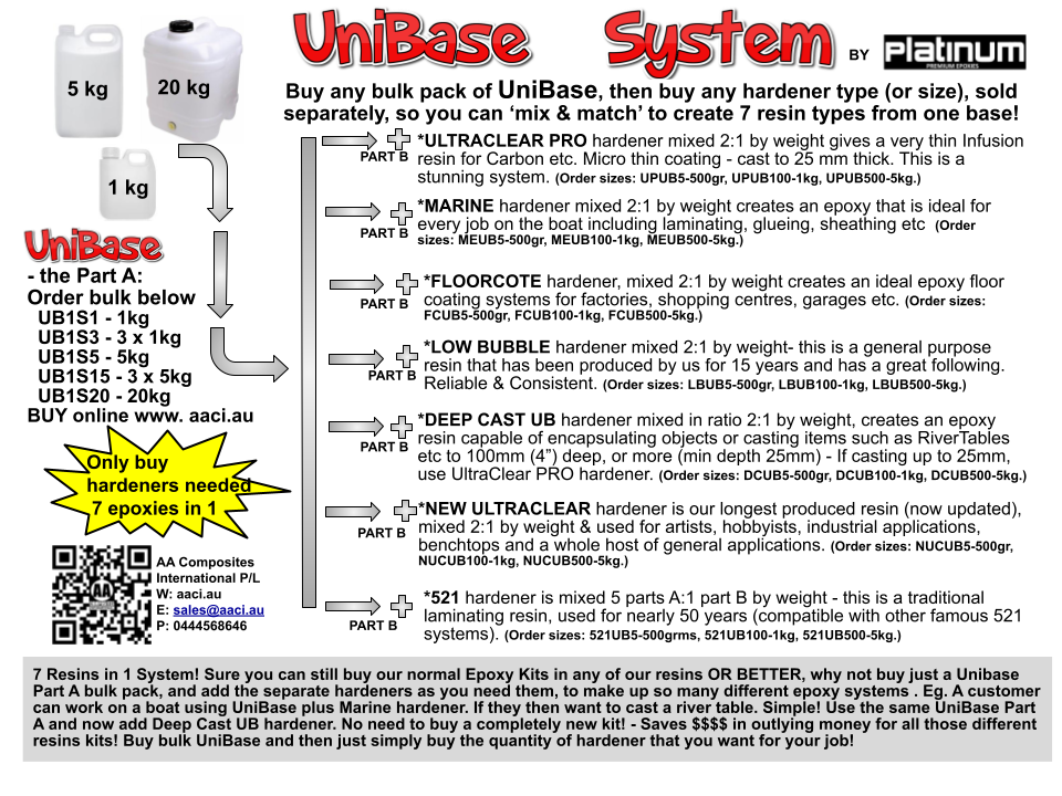 Click here for all the BASE RESIN - PART A sizes to suit the UniBase System